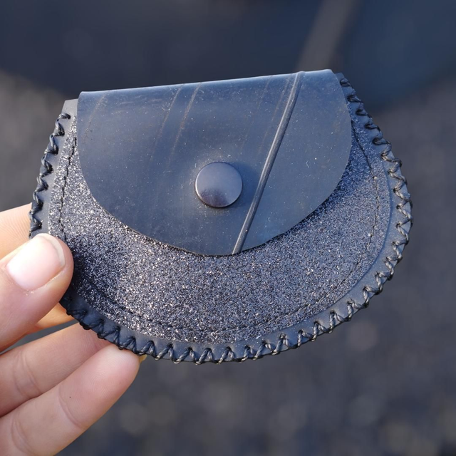 Porte monnaie en chambre à air de tracteur upcyclée et simili cuir noir pailleté. Fermeture pression.